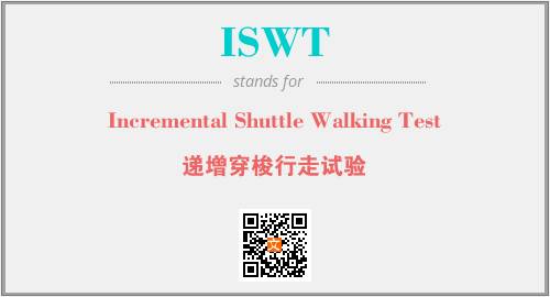 英文缩略词“ISWT”经常作为“Incremental Shuttle Walking Test”的英文缩写来使用,中文表示:“递增穿梭行走试验”。本文将详细介绍英文缩写词ISWT所代表英文单词,其对应的中文拼音、详细解释以及在英语中的流行度。此外,还有关于缩略词ISWT的分类、应用领域及相关应用示例等。