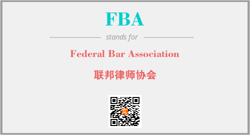 以上为Federal Bar Association英文缩略词FBA的中文解释,以及该英文缩写在英语的流行度、分类和应用领域方面的信息。