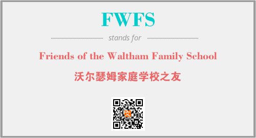 上述内容是“Friends of the Waltham Family School”作为“FWFS”的缩写,解释为“沃尔瑟姆家庭学校之友”时的信息,以及英文缩略词FWFS所代表的英文单词,其对应的中文拼音、详细解释以及在英文中的流行度和相关分类、应用领域及应用示例等。