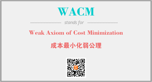 上述内容是“Weak Axiom of Cost Minimization”作为“WACM”的缩写,解释为“成本最小化弱公理”时的信息,以及英文缩略词WACM所代表的英文单词,其对应的中文拼音、详细解释以及在英文中的流行度和相关分类、应用领域及应用示例等。