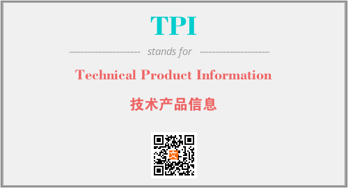上述内容是“Technical Product Information”作为“TPI”的缩写,解释为“技术产品信息”时的信息,以及英文缩略词TPI所代表的英文单词,其对应的中文拼音、详细解释以及在英文中的流行度和相关分类、应用领域及应用示例等。