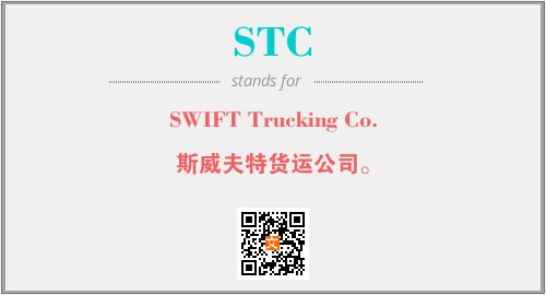 英文缩略词“STC”经常作为“SWIFT Trucking Co.”的英文缩写来使用,中文表示:“斯威夫特货运公司。”。本文将详细介绍英文缩写词STC所代表英文单词,其对应的中文拼音、详细解释以及在英语中的流行度。此外,还有关于缩略词STC的分类、应用领域及相关应用示例等。