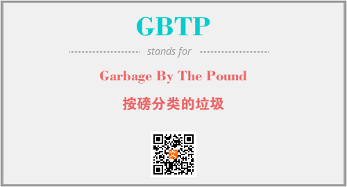英文缩略词“GBTP”经常作为“Garbage By The Pound”的英文缩写来使用,中文表示:“按磅分类的垃圾”。本文将详细介绍英文缩写词GBTP所代表英文单词,其对应的中文拼音、详细解释以及在英语中的流行度。此外,还有关于缩略词GBTP的分类、应用领域及相关应用示例等。