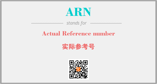 英文缩略词“ARN”经常作为“Actual Reference number”的英文缩写来使用,中文表示:“实际参考号”。本文将详细介绍英文缩写词ARN所代表英文单词,其对应的中文拼音、详细解释以及在英语中的流行度。此外,还有关于缩略词ARN的分类、应用领域及相关应用示例等。