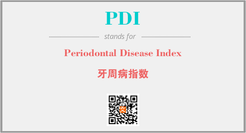上述内容是“Periodontal Disease Index”作为“PDI”的缩写,解释为“牙周病指数”时的信息,以及英文缩略词PDI所代表的英文单词,其对应的中文拼音、详细解释以及在英文中的流行度和相关分类、应用领域及应用示例等。