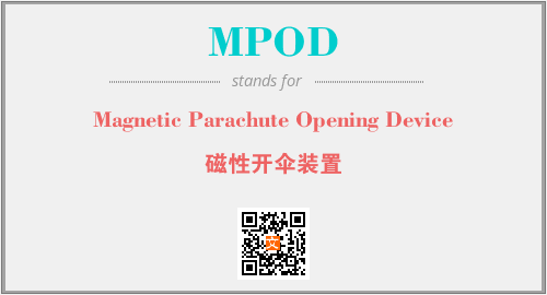 上述内容是“Magnetic Parachute Opening Device”作为“MPOD”的缩写,解释为“磁性开伞装置”时的信息,以及英文缩略词MPOD所代表的英文单词,其对应的中文拼音、详细解释以及在英文中的流行度和相关分类、应用领域及应用示例等。