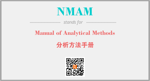 上述内容是“Manual of Analytical Methods”作为“NMAM”的缩写,解释为“分析方法手册”时的信息,以及英文缩略词NMAM所代表的英文单词,其对应的中文拼音、详细解释以及在英文中的流行度和相关分类、应用领域及应用示例等。