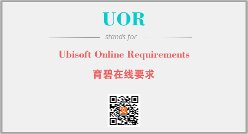 上述内容是“Ubisoft Online Requirements”作为“UOR”的缩写,解释为“育碧在线要求”时的信息,以及英文缩略词UOR所代表的英文单词,其对应的中文拼音、详细解释以及在英文中的流行度和相关分类、应用领域及应用示例等。