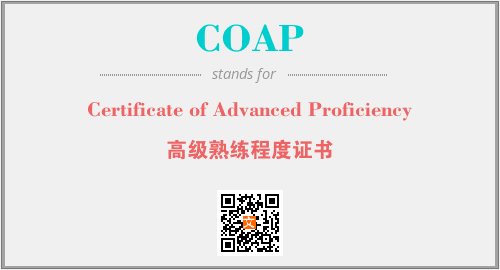 以上为Certificate of Advanced Proficiency英文缩略词COAP的中文解释,以及该英文缩写在英语的流行度、分类和应用领域方面的信息。