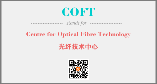 上述内容是“Centre for Optical Fibre Technology”作为“COFT”的缩写,解释为“光纤技术中心”时的信息,以及英文缩略词COFT所代表的英文单词,其对应的中文拼音、详细解释以及在英文中的流行度和相关分类、应用领域及应用示例等。
