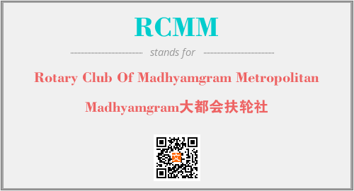 上述内容是“Rotary Club Of Madhyamgram Metropolitan”作为“RCMM”的缩写,解释为“Madhyamgram大都会扶轮社”时的信息,以及英文缩略词RCMM所代表的英文单词,其对应的中文拼音、详细解释以及在英文中的流行度和相关分类、应用领域及应用示例等。
