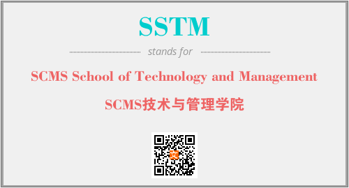 英文缩略词“SSTM”经常作为“SCMS School of Technology and Management”的英文缩写来使用,中文表示:“SCMS技术与管理学院”。本文将详细介绍英文缩写词SSTM所代表英文单词,其对应的中文拼音、详细解释以及在英语中的流行度。此外,还有关于缩略词SSTM的分类、应用领域及相关应用示例等。