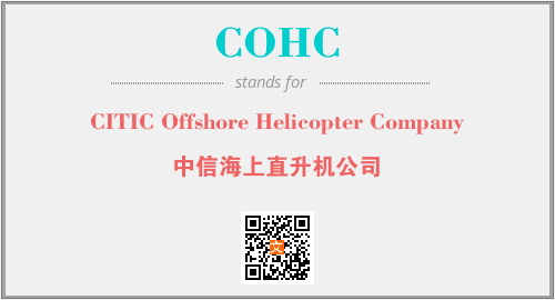 上述内容是“CITIC Offshore Helicopter Company”作为“COHC”的缩写,解释为“中信海上直升机公司”时的信息,以及英文缩略词COHC所代表的英文单词,其对应的中文拼音、详细解释以及在英文中的流行度和相关分类、应用领域及应用示例等。