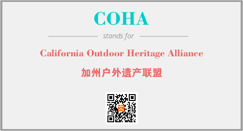 上述内容是“California Outdoor Heritage Alliance”作为“COHA”的缩写,解释为“加州户外遗产联盟”时的信息,以及英文缩略词COHA所代表的英文单词,其对应的中文拼音、详细解释以及在英文中的流行度和相关分类、应用领域及应用示例等。