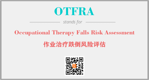 英文缩略词“OTFRA”经常作为“Occupational Therapy Falls Risk Assessment”的英文缩写来使用,中文表示:“作业治疗跌倒风险评估”。本文将详细介绍英文缩写词OTFRA所代表英文单词,其对应的中文拼音、详细解释以及在英语中的流行度。此外,还有关于缩略词OTFRA的分类、应用领域及相关应用示例等。