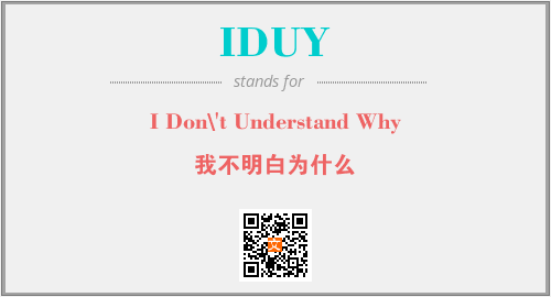 以上为I Don\'t Understand Why英文缩略词IDUY的中文解释,以及该英文缩写在英语的流行度、分类和应用领域方面的信息。