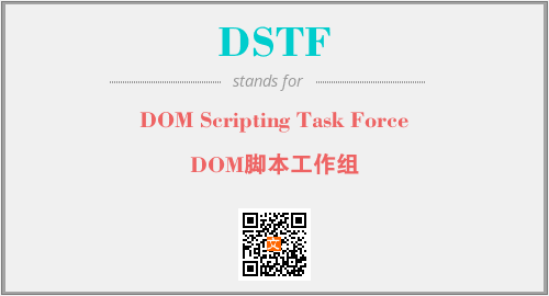 英文缩略词“DSTF”经常作为“DOM Scripting Task Force”的英文缩写来使用,中文表示:“DOM脚本工作组”。本文将详细介绍英文缩写词DSTF所代表英文单词,其对应的中文拼音、详细解释以及在英语中的流行度。此外,还有关于缩略词DSTF的分类、应用领域及相关应用示例等。