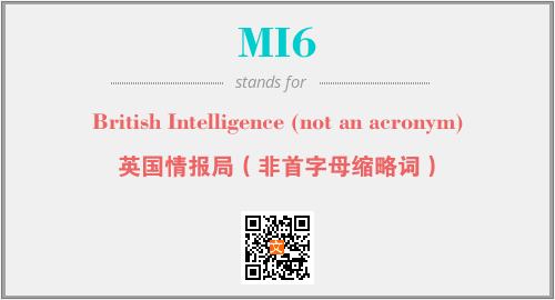 以上为British Intelligence (not an acronym)英文缩略词MI6的中文解释,以及该英文缩写在英语的流行度、分类和应用领域方面的信息。