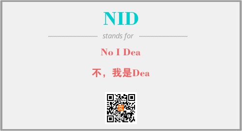 上述内容是“No I Dea”作为“NID”的缩写,解释为“不,我是Dea”时的信息,以及英文缩略词NID所代表的英文单词,其对应的中文拼音、详细解释以及在英文中的流行度和相关分类、应用领域及应用示例等。