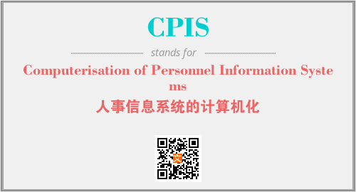 上述内容是“Computerisation of Personnel Information Systems”作为“CPIS”的缩写,解释为“人事信息系统的计算机化”时的信息,以及英文缩略词CPIS所代表的英文单词,其对应的中文拼音、详细解释以及在英文中的流行度和相关分类、应用领域及应用示例等。
