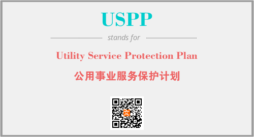 英文缩略词“USPP”经常作为“Utility Service Protection Plan”的英文缩写来使用,中文表示:“公用事业服务保护计划”。本文将详细介绍英文缩写词USPP所代表英文单词,其对应的中文拼音、详细解释以及在英语中的流行度。此外,还有关于缩略词USPP的分类、应用领域及相关应用示例等。