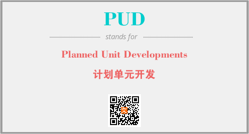 英文缩略词“PUD”经常作为“Planned Unit Developments”的英文缩写来使用,中文表示:“计划单元开发”。本文将详细介绍英文缩写词PUD所代表英文单词,其对应的中文拼音、详细解释以及在英语中的流行度。此外,还有关于缩略词PUD的分类、应用领域及相关应用示例等。