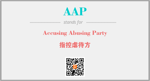 上述内容是“Accusing Abusing Party”作为“AAP”的缩写,解释为“指控虐待方”时的信息,以及英文缩略词AAP所代表的英文单词,其对应的中文拼音、详细解释以及在英文中的流行度和相关分类、应用领域及应用示例等。