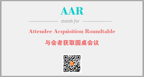 上述内容是“Attendee Acquisition Roundtable”作为“AAR”的缩写,解释为“与会者获取圆桌会议”时的信息,以及英文缩略词AAR所代表的英文单词,其对应的中文拼音、详细解释以及在英文中的流行度和相关分类、应用领域及应用示例等。