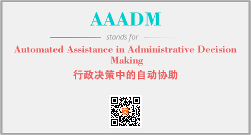 上述内容是“Automated Assistance in Administrative Decision Making”作为“AAADM”的缩写,解释为“行政决策中的自动协助”时的信息,以及英文缩略词AAADM所代表的英文单词,其对应的中文拼音、详细解释以及在英文中的流行度和相关分类、应用领域及应用示例等。