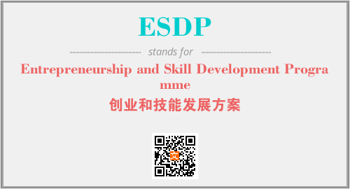 以上为Entrepreneurship and Skill Development Programme英文缩略词ESDP的中文解释,以及该英文缩写在英语的流行度、分类和应用领域方面的信息。
