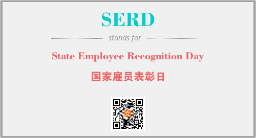 上述内容是“State Employee Recognition Day”作为“SERD”的缩写,解释为“国家雇员表彰日”时的信息,以及英文缩略词SERD所代表的英文单词,其对应的中文拼音、详细解释以及在英文中的流行度和相关分类、应用领域及应用示例等。