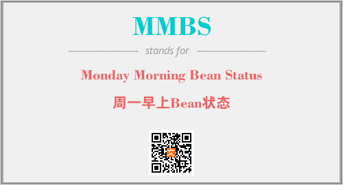 以上为Monday Morning Bean Status英文缩略词MMBS的中文解释,以及该英文缩写在英语的流行度、分类和应用领域方面的信息。