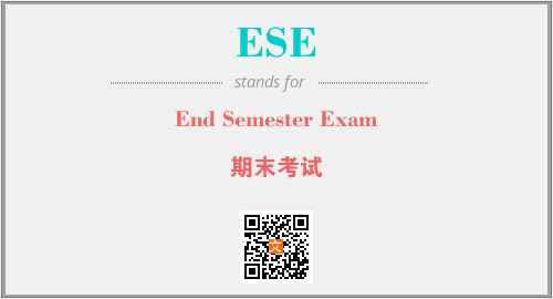 英文缩略词“ESE”经常作为“End Semester Exam”的英文缩写来使用,中文表示:“期末考试”。本文将详细介绍英文缩写词ESE所代表英文单词,其对应的中文拼音、详细解释以及在英语中的流行度。此外,还有关于缩略词ESE的分类、应用领域及相关应用示例等。