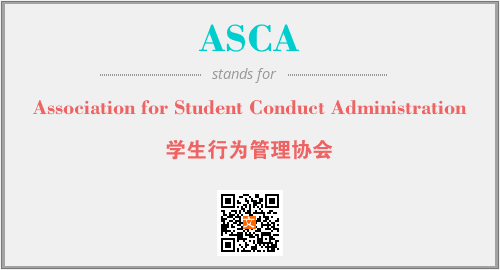 以上为Association for Student Conduct Administration英文缩略词ASCA的中文解释,以及该英文缩写在英语的流行度、分类和应用领域方面的信息。