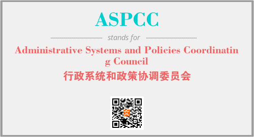 上述内容是“Administrative Systems and Policies Coordinating Council”作为“ASPCC”的缩写,解释为“行政系统和政策协调委员会”时的信息,以及英文缩略词ASPCC所代表的英文单词,其对应的中文拼音、详细解释以及在英文中的流行度和相关分类、应用领域及应用示例等。