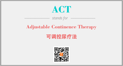 上述内容是“Adjustable Continence Therapy”作为“ACT”的缩写,解释为“可调控尿疗法”时的信息,以及英文缩略词ACT所代表的英文单词,其对应的中文拼音、详细解释以及在英文中的流行度和相关分类、应用领域及应用示例等。