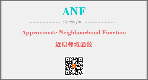 上述内容是“Approximate Neighbourhood Function”作为“ANF”的缩写,解释为“近似邻域函数”时的信息,以及英文缩略词ANF所代表的英文单词,其对应的中文拼音、详细解释以及在英文中的流行度和相关分类、应用领域及应用示例等。