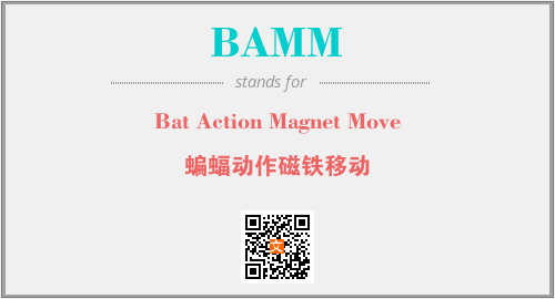 上述内容是“Bat Action Magnet Move”作为“BAMM”的缩写,解释为“蝙蝠动作磁铁移动”时的信息,以及英文缩略词BAMM所代表的英文单词,其对应的中文拼音、详细解释以及在英文中的流行度和相关分类、应用领域及应用示例等。