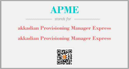 上述内容是“akkadian Provisioning Manager Express”作为“APME”的缩写,解释为“akkadian Provisioning Manager Express”时的信息,以及英文缩略词APME所代表的英文单词,其对应的中文拼音、详细解释以及在英文中的流行度和相关分类、应用领域及应用示例等。
