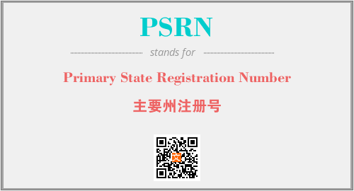 英文缩略词“PSRN”经常作为“Primary State Registration Number”的英文缩写来使用,中文表示:“主要州注册号”。本文将详细介绍英文缩写词PSRN所代表英文单词,其对应的中文拼音、详细解释以及在英语中的流行度。此外,还有关于缩略词PSRN的分类、应用领域及相关应用示例等。