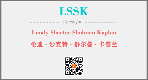 上述内容是“Lundy Shacter Shulman Kaplan”作为“LSSK”的缩写,解释为“伦迪·沙克特·舒尔曼·卡普兰”时的信息,以及英文缩略词LSSK所代表的英文单词,其对应的中文拼音、详细解释以及在英文中的流行度和相关分类、应用领域及应用示例等。