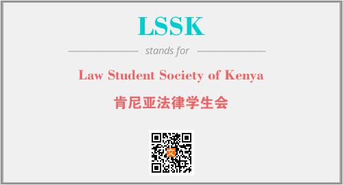 英文缩略词“LSSK”经常作为“Law Student Society of Kenya”的英文缩写来使用,中文表示:“肯尼亚法律学生会”。本文将详细介绍英文缩写词LSSK所代表英文单词,其对应的中文拼音、详细解释以及在英语中的流行度。此外,还有关于缩略词LSSK的分类、应用领域及相关应用示例等。