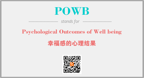 上述内容是“Psychological Outcomes of Well being”作为“POWB”的缩写,解释为“幸福感的心理结果”时的信息,以及英文缩略词POWB所代表的英文单词,其对应的中文拼音、详细解释以及在英文中的流行度和相关分类、应用领域及应用示例等。