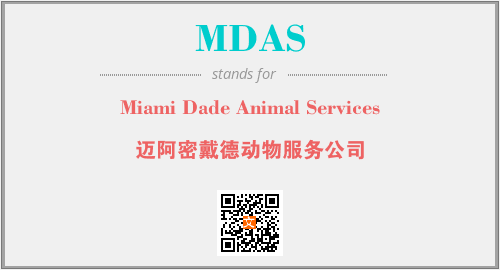 上述内容是“Miami Dade Animal Services”作为“MDAS”的缩写,解释为“迈阿密戴德动物服务公司”时的信息,以及英文缩略词MDAS所代表的英文单词,其对应的中文拼音、详细解释以及在英文中的流行度和相关分类、应用领域及应用示例等。