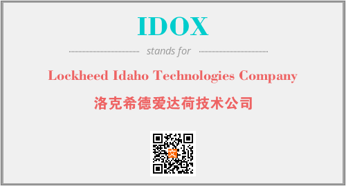 上述内容是“Lockheed Idaho Technologies Company”作为“IDOX”的缩写,解释为“洛克希德爱达荷技术公司”时的信息,以及英文缩略词IDOX所代表的英文单词,其对应的中文拼音、详细解释以及在英文中的流行度和相关分类、应用领域及应用示例等。