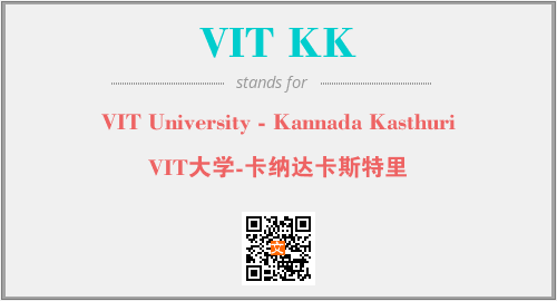 上述内容是“VIT University - Kannada Kasthuri”作为“VIT KK”的缩写,解释为“VIT大学-卡纳达卡斯特里”时的信息,以及英文缩略词VIT KK所代表的英文单词,其对应的中文拼音、详细解释以及在英文中的流行度和相关分类、应用领域及应用示例等。