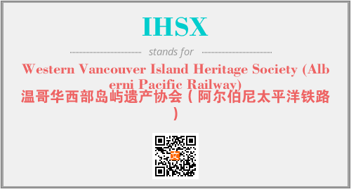 上述内容是“Western Vancouver Island Heritage Society (Alberni Pacific Railway)”作为“IHSX”的缩写,解释为“温哥华西部岛屿遗产协会(阿尔伯尼太平洋铁路)”时的信息,以及英文缩略词IHSX所代表的英文单词,其对应的中文拼音、详细解释以及在英文中的流行度和相关分类、应用领域及应用示例等。