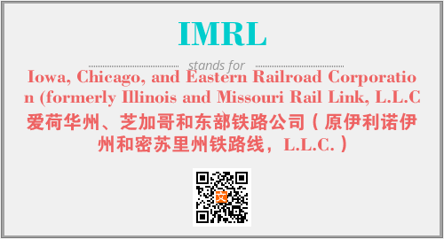 上述内容是“Iowa, Chicago, and Eastern Railroad Corporation (formerly Illinois and Missouri Rail Link, L.L.C.)”作为“IMRL”的缩写,解释为“爱荷华州、芝加哥和东部铁路公司(原伊利诺伊州和密苏里州铁路线,L.L.C.)”时的信息,以及英文缩略词IMRL所代表的英文单词,其对应的中文拼音、详细解释以及在英文中的流行度和相关分类、应用领域及应用示例等。