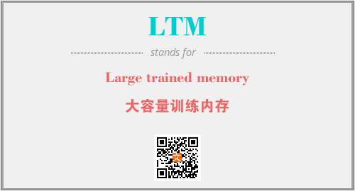 上述内容是“Large trained memory”作为“LTM”的缩写,解释为“大容量训练内存”时的信息,以及英文缩略词LTM所代表的英文单词,其对应的中文拼音、详细解释以及在英文中的流行度和相关分类、应用领域及应用示例等。