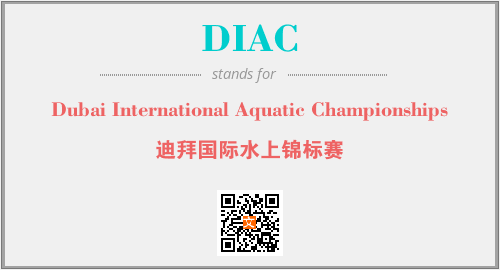 上述内容是“Dubai International Aquatic Championships”作为“DIAC”的缩写,解释为“迪拜国际水上锦标赛”时的信息,以及英文缩略词DIAC所代表的英文单词,其对应的中文拼音、详细解释以及在英文中的流行度和相关分类、应用领域及应用示例等。